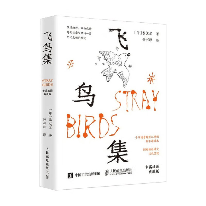 書名:《飛鳥(niǎo)集》 定價(jià):58.8元 作者:泰戈?duì)栔?/span> ISBN:9787115670335 出版社:人民郵電出版社 內(nèi)容簡(jiǎn)介: 《飛鳥(niǎo)集》是中國(guó)人最喜歡的泰戈?duì)栐?shī)集,共有325首小詩(shī),浪漫與哲理并存。以極其平常的花花草草、山山水水、晨曦黃昏、星辰大海、飛禽走獸、愛(ài)恨情仇、生離死別等為素材,充盈著清新雋永的詩(shī)情畫意,散發(fā)著彌足珍貴的人間真情,洋溢著耐人尋味的深刻哲理。閱讀《飛鳥(niǎo)集》,欣賞詩(shī)人充滿神韻的優(yōu)美文筆,嘆服詩(shī)人如大海一樣無(wú)垠的寬廣胸襟,擁抱詩(shī)人像宇宙一樣深邃的人文關(guān)懷,汲取詩(shī)人洞察人世的金色智慧,追隨詩(shī)人天人合一的自我修煉,可以拋卻喧囂浮躁塵世的一切煩憂。